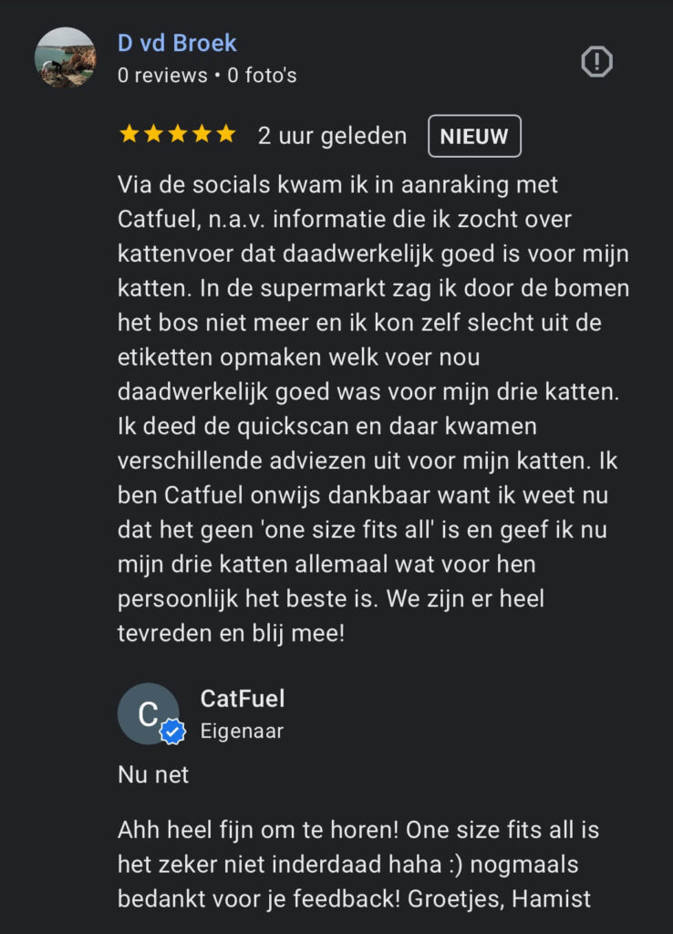 Ik wil dat jij en je kat tevreden zijn over de producten en service.
