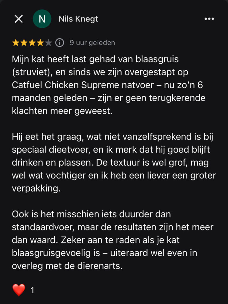 En in het geval je nog niet zeker bent of dit voer geschikt is voor jouw kat, dan ben ik online bereikbaar via verschillende kanalen om je verder te helpen.